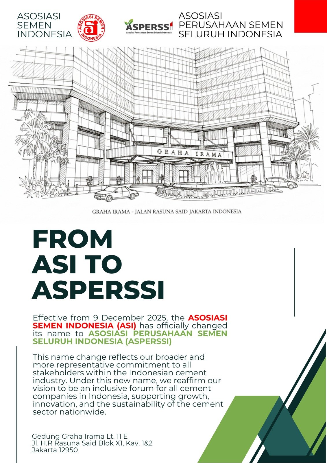 Effective December 9, 2025, the ASOSIASI Semen Indonesia (ASII) will officially change its name to Asosiasi Perusahaan Semen Seluruh Indonesia (ASPERSI). This …